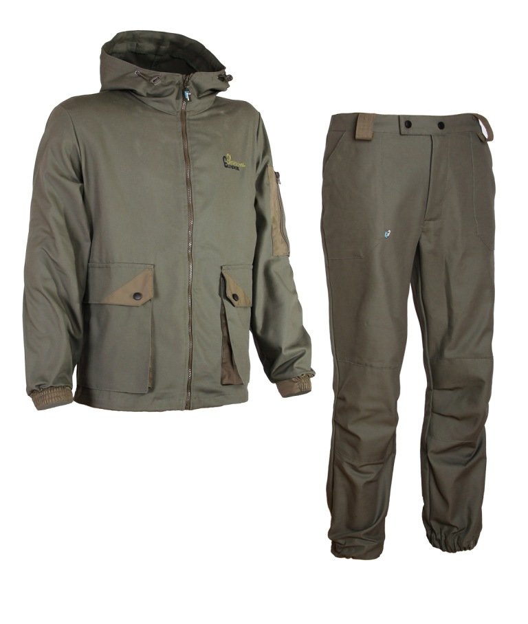 Костюм «Драгон» выполнен из ткани – Канвас - 100% хлопок. Костюм сшит армированными нитками и использована фурнитура повышенной прочности. Куртка: - с двух сторон на капюшоне и понизу куртки по 2 люверса и фиксатору на шляпной резинке. - 2 объемных кармана с отделкой. - на карманах клапаны на кнопках. - карман на молнии на рукаве. - на рукаве двухцветная вышивка в европейском стиле. - усиленные манжеты, прошитые в четыре шва. Брюки: - поясная резинка. - шлевки для ремня и подвязки болотных сапог. - 2 накладных кармана. - усиления на коленях. - защипы на коленях, создают комфорт и препятствуют отвисанию в области колен при приседаниях. - резинка по низу брюк. Костюм Dragon прекрасно подойдет для любителей охоты и рыбалки, как в летний, так и в демисезонный период.