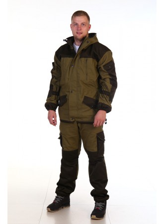 Костюм для охоты, рыбалки, активного отдыха.Изготовлен из ткани палатка + грета +флис 180 гр+ синтепон 200 грУниверсальный костюм для активного отдыха состоит из куртки и брюк свободного кроя. Костюм состоит из КУРТКИ, БРЮК и ПОДТЯЖЕККУРТКА свободного кроя с центральной бортовой застежкой на молнию и ветрозащитной планкой. На куртке имеется Полочки с кокетками, с верхними прорезными карманами в рамке с молниями, два накладных кармана, два накладных кармана на рукавах с застежкой на липучку, а так же внутренний карман. Кокетка и область локтя усиливаются фигурными накладками, низ рукавов на резинке. Капюшон двойной, имеет утягивающую кулису для регулировки по объему. Низ куртки регулируется с помощью кулисы, талия стягивается резинкой по бокам.БРЮКИ свободного кроя, имеют 2 боковых врезных кармана, 2 задних накладных кармана, а та же 2 боковых накладных кармана с клапаном. В области коленей и на задних половинках брюк по шву сидения усиливающие накладки, сзади под коленом брюки стягиваются резинкой. Низ брюк на резинке, пояс на резинке со шлевками под ремень, пристегиваются помочи (подтяжки).