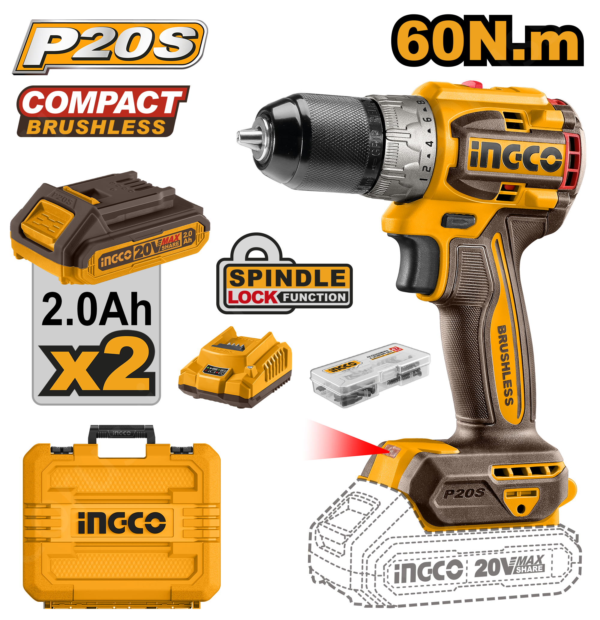 Шуруповерт INGCO CDLI20602 используется для завинчивания и отвинчивания шурупов, саморезов, а также сверления в различных материалах.Особенности и преимущества:- бесщеточный двигатель обеспечивает высокую производительность работ;- быстрозажимной патрон для быстрой замены оснастки;- встроенная подсветка облегчает работу в плохо освещенных местах;- обладает улучшенной защитой от попадания пыли;- две скорости: первая для закручивания саморезов, вторая для сверления отверстий;- скорость вращения регулируется усилием нажатия на клавишу пуска;- ступени крутящего момента регулируются при помощи установочного кольца;- прорезиненная рукоятка обеспечивает надежный хват.