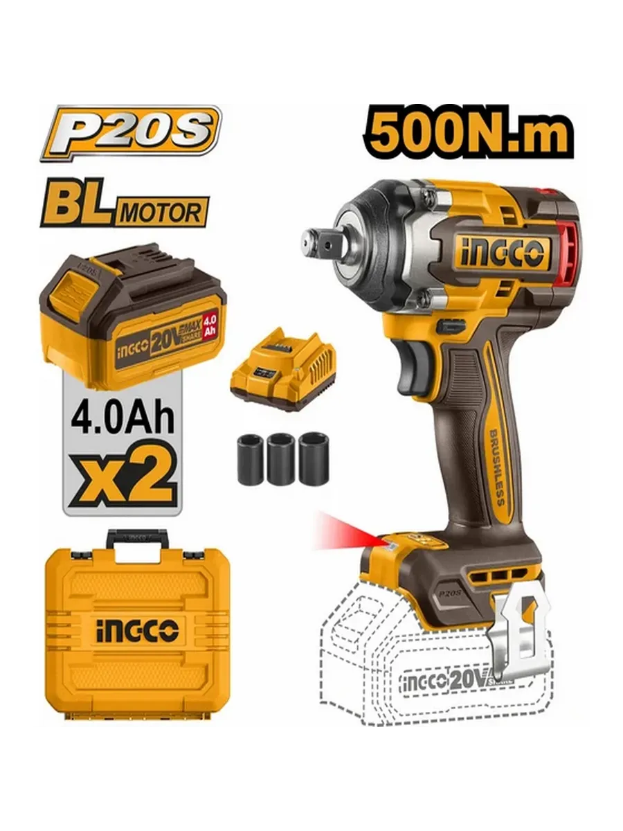 Аккумуляторный ударный гайковерт BL 20В 500Hm 1/2 ABR SUPER INGCO CIWLI2050 INDUSTRIAL применяется для заворачивания и отворачивания болтов или гаек. Ручной гайковерт имеет 3 режима скорости и изменение направления вращения (реверс), квадратный привод 12.7 мм (1/2).