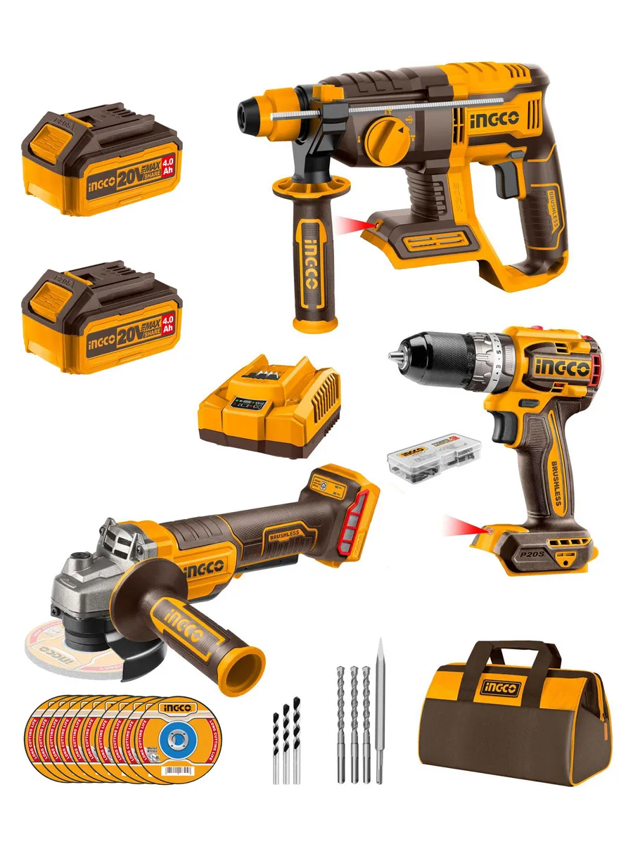 Набор аккумуляторного инструмента INGCO COSLI240202 INDUSTRIAL 20 В 3 шт. В набор входит: