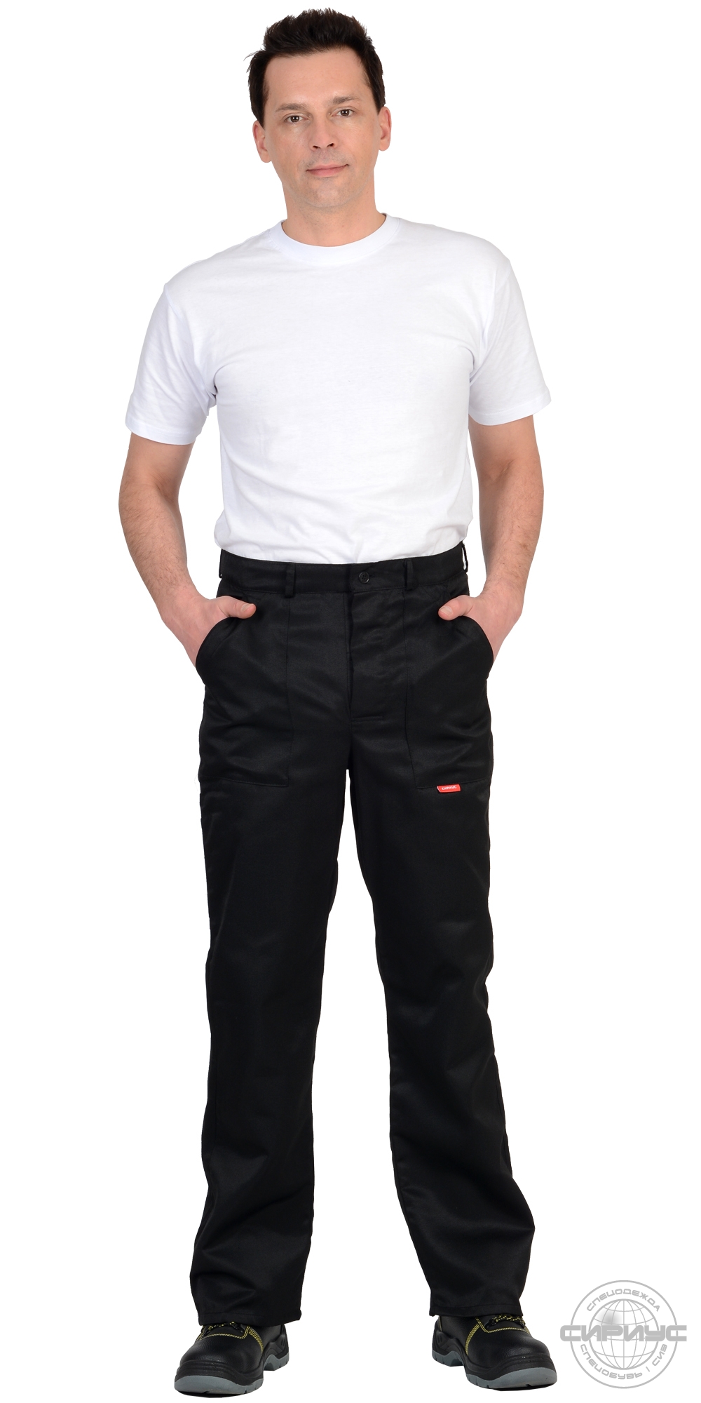 Брюки с заст.жкой спереди на 3 петли и 3пуговицы, с притачным поясом с 5 шлевками и заст.жкой на 1 петлю и пуговицу, с накладными боковыми карманами с наклонным входом, с накладным фигурным карманом и двумя (расположенными один на другом) накладными фигурными кармашками для инструментов на правой задней половинке. На маленьком кармашке 2 наклонные петли. ГОСТ 12.4.280-2014