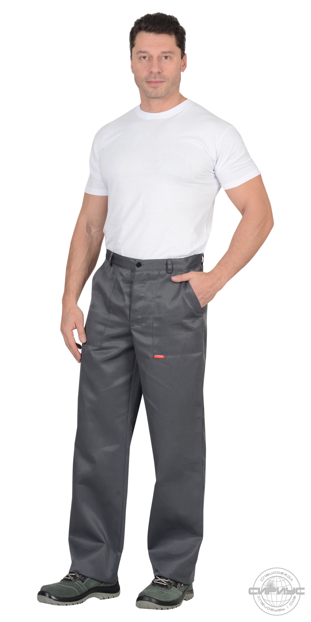 Брюки с заст.жкой спереди на 3 петли и 3пуговицы, с притачным поясом с 5 шлевками и заст.жкой на 1 петлю и пуговицу, с накладными боковыми карманами с наклонным входом, с накладным фигурным карманом и двумя (расположенными один на другом) накладными фигурными кармашками для инструментов на правой задней половинке. На маленьком кармашке 2 наклонные петли. ГОСТ 12.4.280-2014