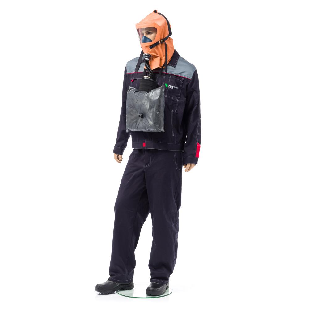 Капюшон с полумаской и смотровым окном, ремни оголовья, дыхательный мешок с клапаном избыточного давления, регенеративный патрон в защитном кожухе с пусковой ампулой, соединенный с капюшоном с помощью соединительной трубки.