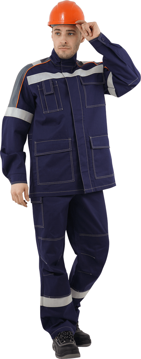 В костюме используется огнестойкая световозвращающая полоса шириной 50 мм. Огнестойкие нитки Nomex.