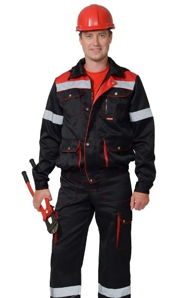 Сырье: Тк. "CROWN-230" 20% х/б, 80% п/э, поверхностная плотность 230 г/кв.м Описание: Куртка короткая, прямого силуэта, с пристёгивающимся капюшоном, с центральной застёжкой на "молнию" и внешней ветрозащитной планкой, застёгивающаяся на кнопки, отложным воротником, верхними и нижними с объёмом карманами с клапанами на кнопках. Рукава с манжетами на кнопках. Полукомбинезон с регулируемыми за счёт эластичной тесьмы и фастексов бретелями, с притачным нагрудником, с притачным поясом со шлёвками, с застёжкой гульфика на "молнию", с застёжкой на пуговицы. ГОСТ 27575-87.
