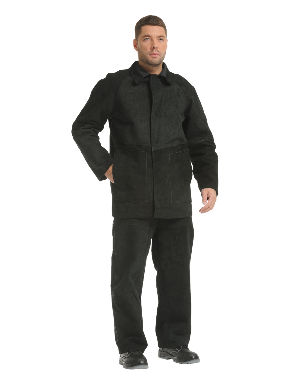 Костюм состоит из куртки и брюк. Нитки — огнестойкие.