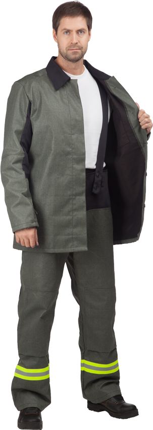 В костюме используется огнестойкая светоотражающая лента (СОП) 50 мм и огнестойкие нитки.