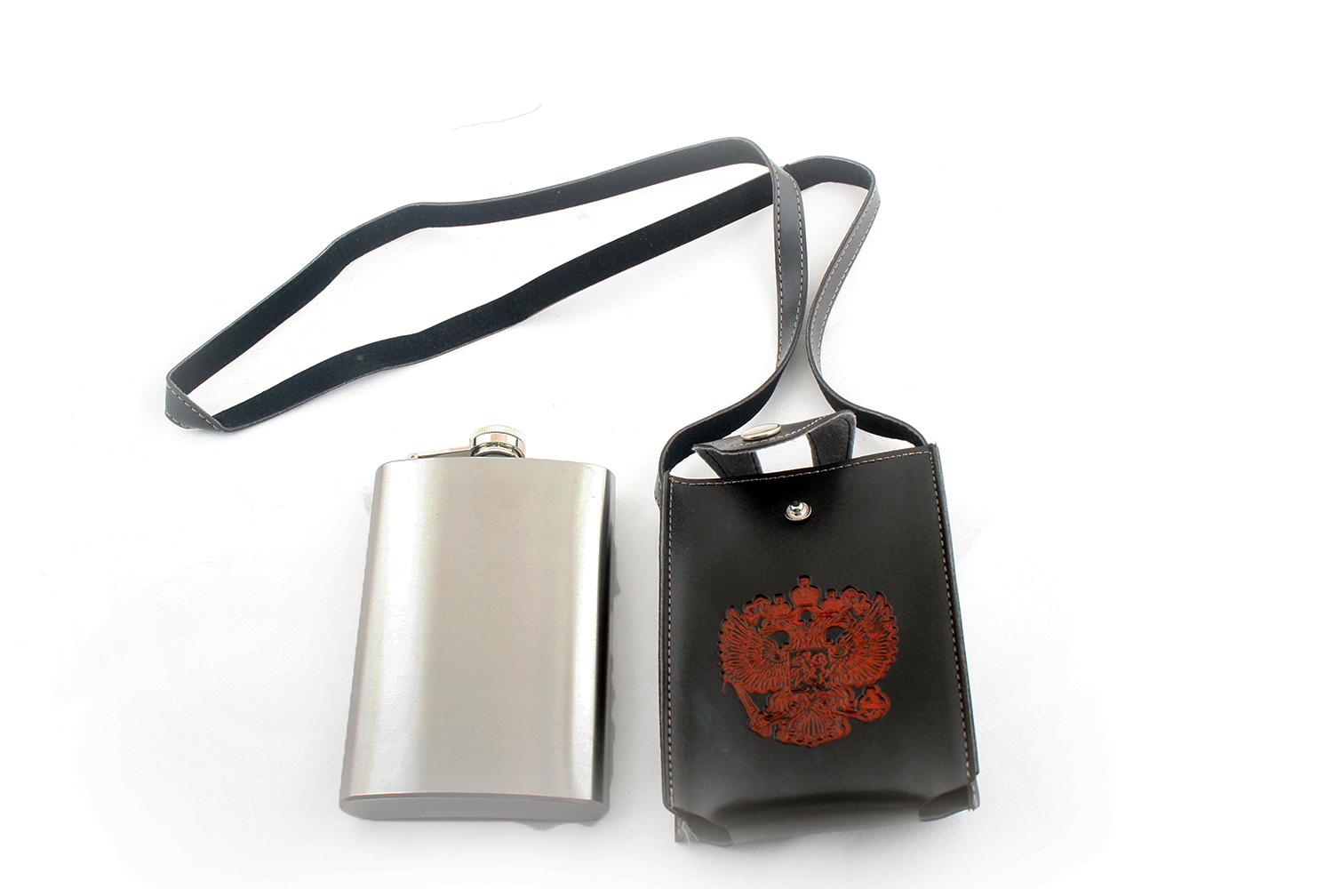 Фляга мет.в кож. чехле с гербом, черный