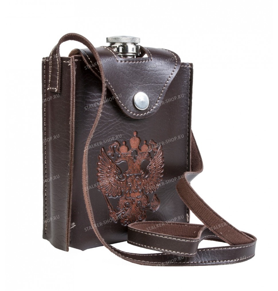 Фляга поставляется в комплекте с чехлом из искусственной кожи с изображением Герба России. Продуманная система крепления крышки к фляге исключает возможность уронить или потерять крышку.Фляга "Герб России" - не только памятный сувенир, но и настоящий мужской подарок.Материал - нержавеющая сталь.