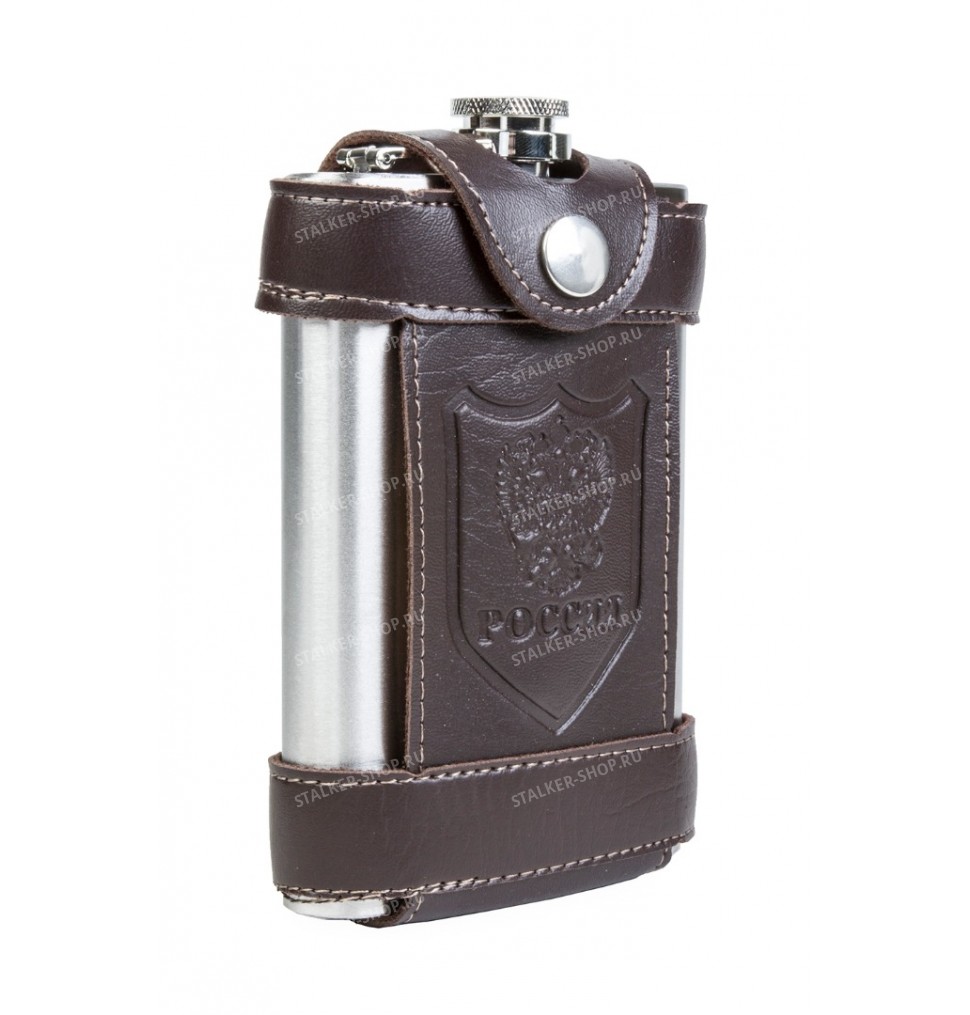 Фляга поставляется в комплекте с чехлом из искусственной кожи с изображением Герба России. Продуманная система крепления крышки к фляге исключает возможность уронить или потерять крышку.Фляга "Герб России" - не только памятный сувенир, но и настоящий мужской подарок.Материал - нержавеющая сталь.